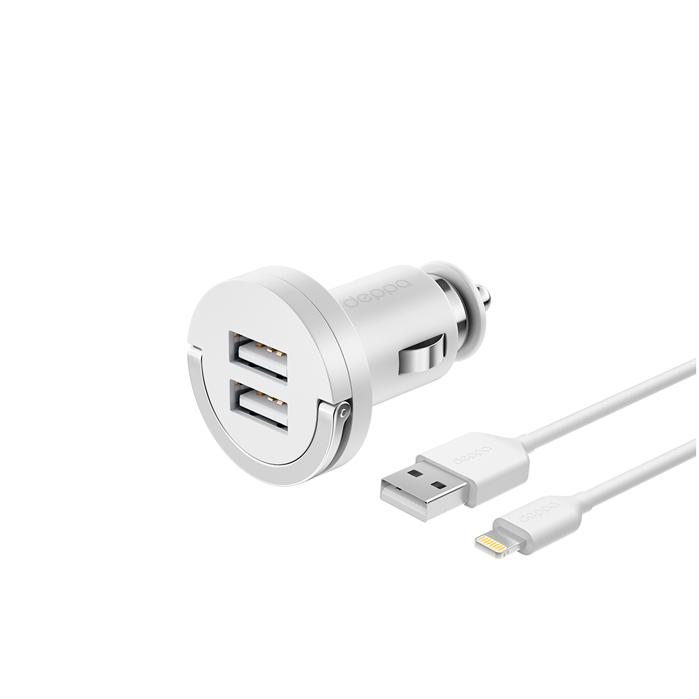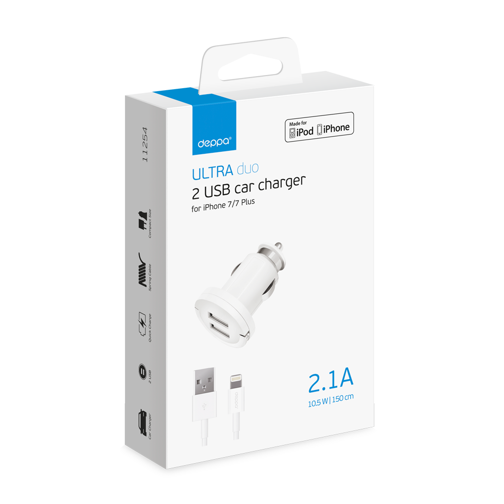 Купить АЗУ, 2 USB 2.1А, дата-кабель с коннектором lightning, белый, Ultra, Deppa DEP-11254