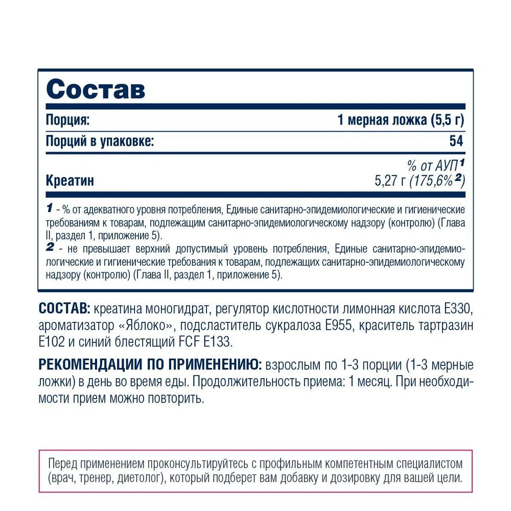 | Форма креатина | креатин моногидрат |