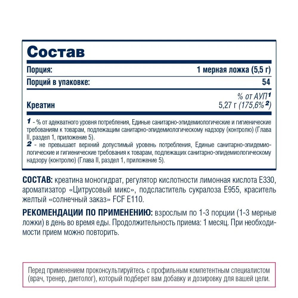 Creatine Monohydrate Powder, 300 г / Банка, Citrus Mix / Цитрусовый Микс