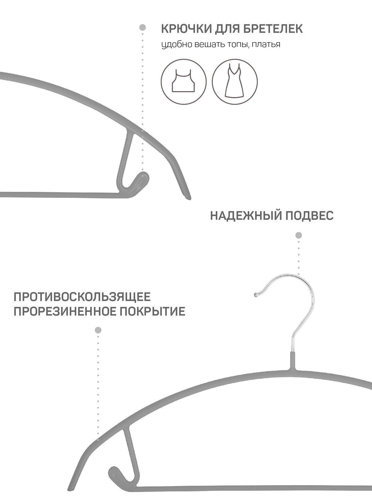 Вешалка плечики МЕТ С резин покрыт "БАРБАРА" серый 60581 (50) мастер интересное: