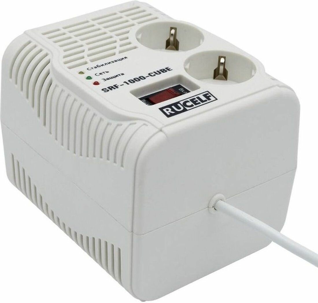Стабилизатор напряжения RUCELF SRF-1000-CUBE, 0.36кВт белый