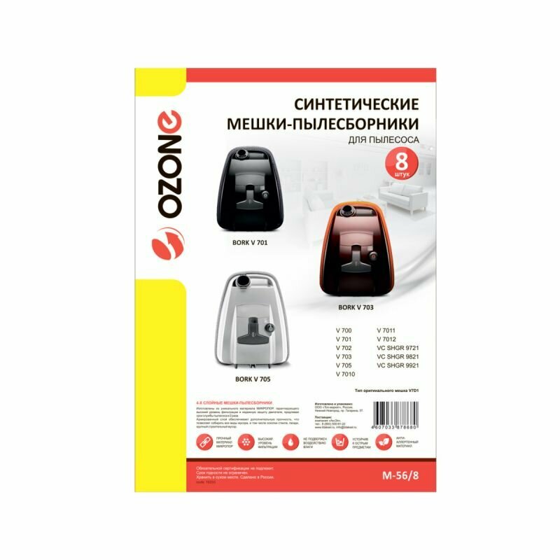 Ниже Вы можете прочитать отзывы на Мешки-пылесборники синтетические для пылесоса BORK (8 шт.) OZONE M-56, ознакомится с подробными характеристиками, посмотреть интересные обзоры и фотографии на Мешки-пылесборники синтетические для пылесоса BORK (8 шт.) OZONE M-56.