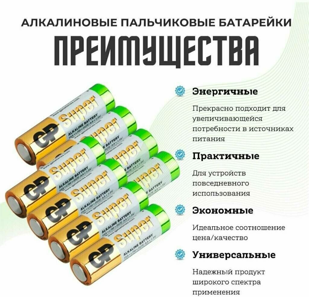 | Плюсы: | Это действительно батарейки GP Super Alkaline AA |