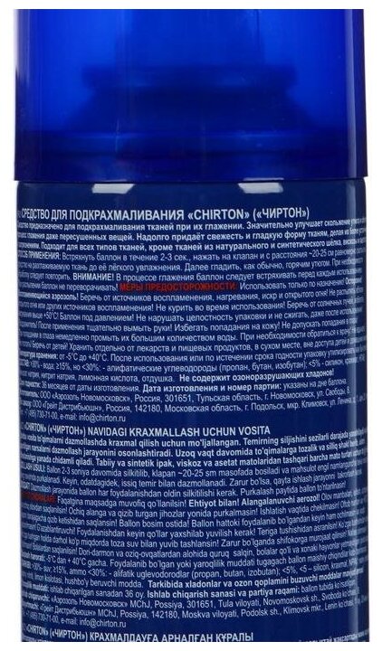 Chirton Крахмал спрей для одежды для улучшения скольжения утюга по ткани, 300 мл