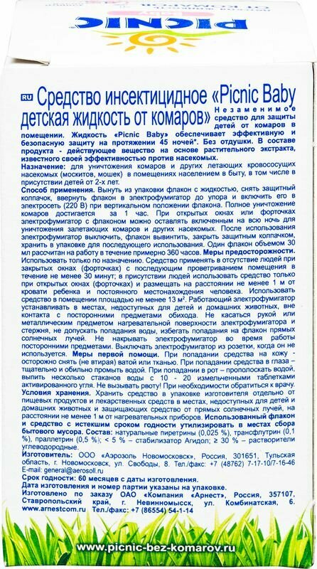 Детская жидкость от комаров 45 ночей Picnic Baby 30 мл. х 2 шт.