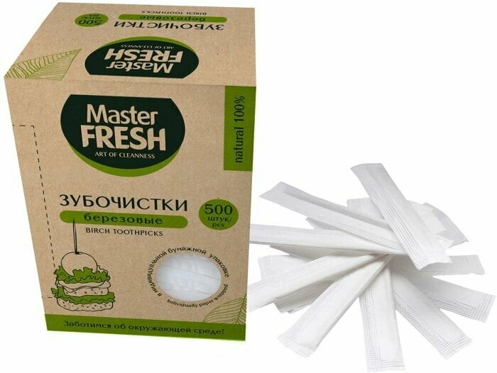 Master Fresh ЭКО зубочистки в бумажной упаковке и в картонной коробке, 500 шт в уп
