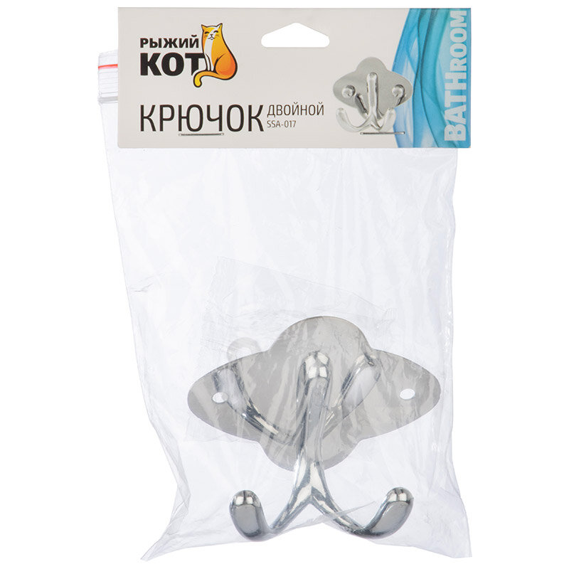 Крючок для ванной двойной, нерж. сталь, SSA-017, 310784, Рыжий Кот
