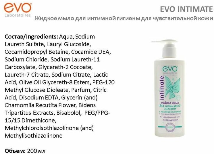 Мыло жидкое EVO 200мл для интимной гигиены для чувствительной кожи
