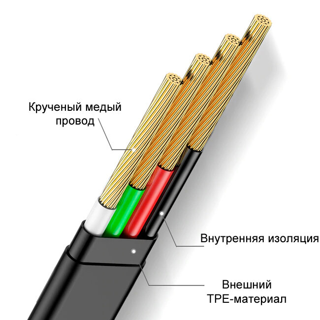 | Плюсы: | Качественный кабель, не запутывается, заряжает как родной. |