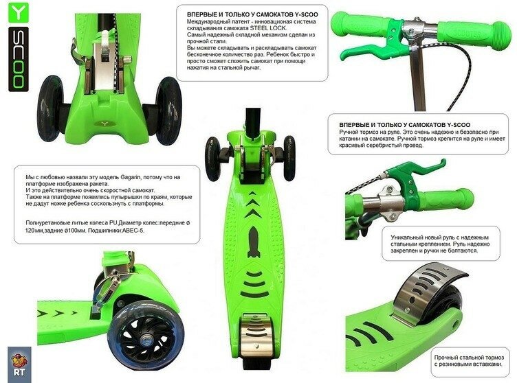 Детский 3-колесный самокат Y-Scoo RT Maxi City Simple Gagarin трансформер, green интересное:
