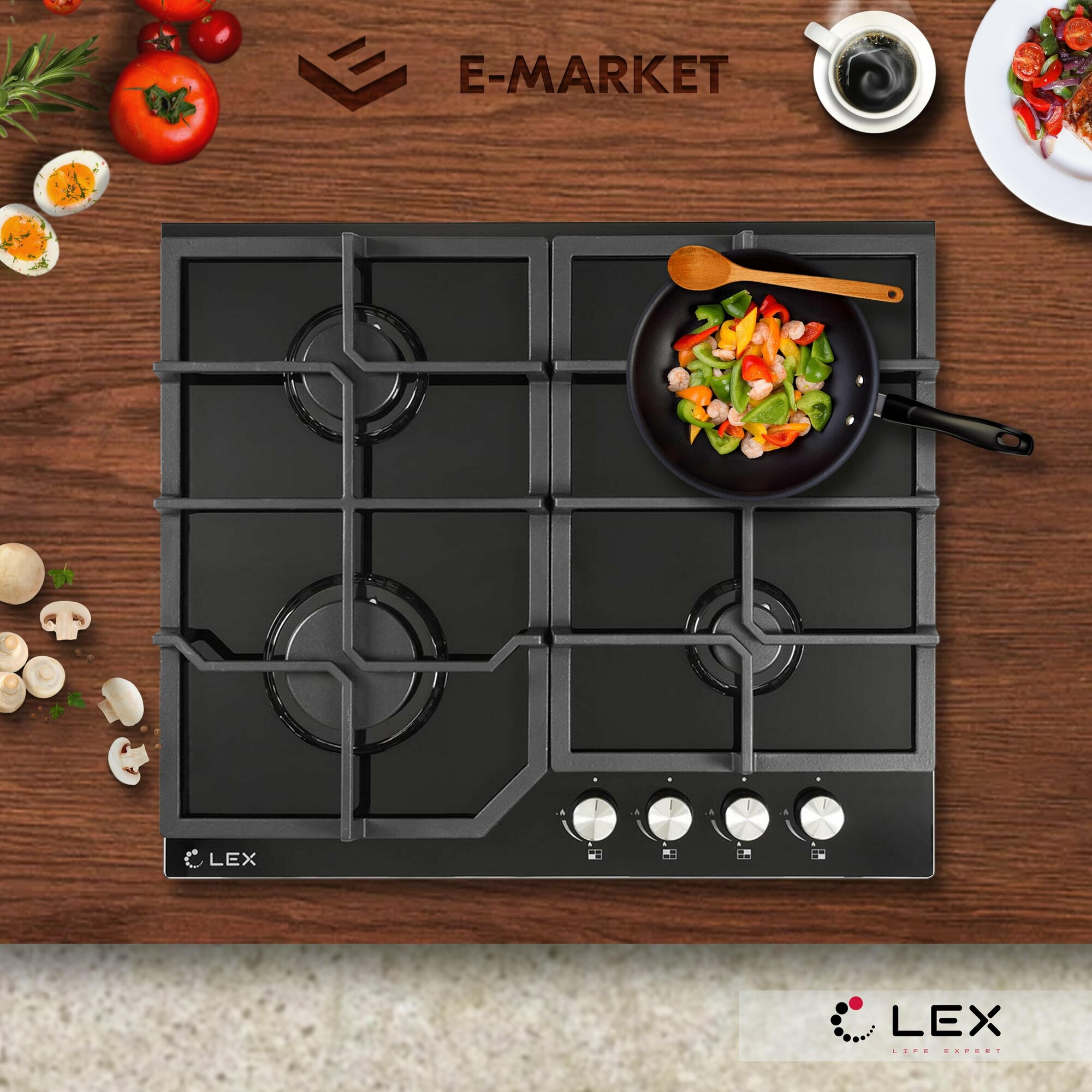 LEX Варочная поверхность LEX GVG 642 BL газовая, черная