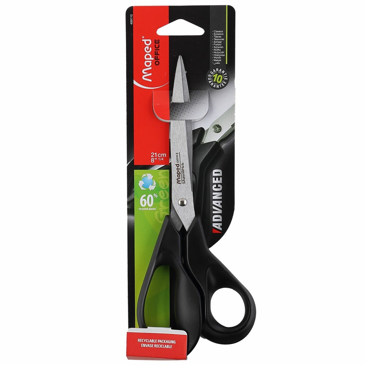 Купить Ножницы 21 см MAPED ADVANCED GREEN, асимметрия, черные Гарантия 5 лет