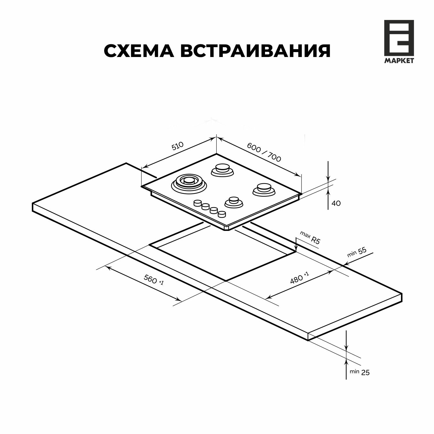| Ширина для встраивания | 56 см |