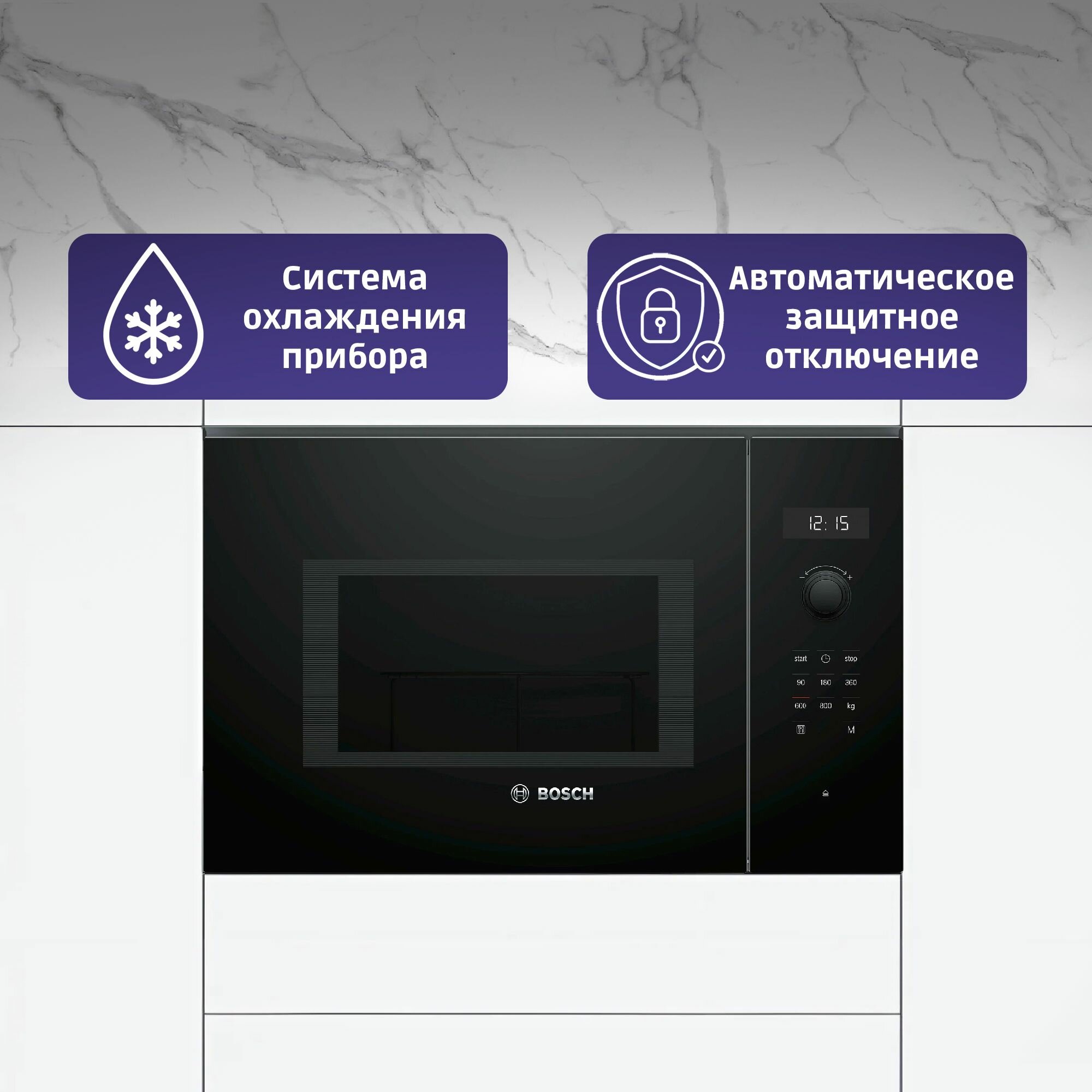 Микроволновая печь встраиваемая Bosch BFL524MB0, 20 л, 800 Вт, автоматическая разморозка, дисплей