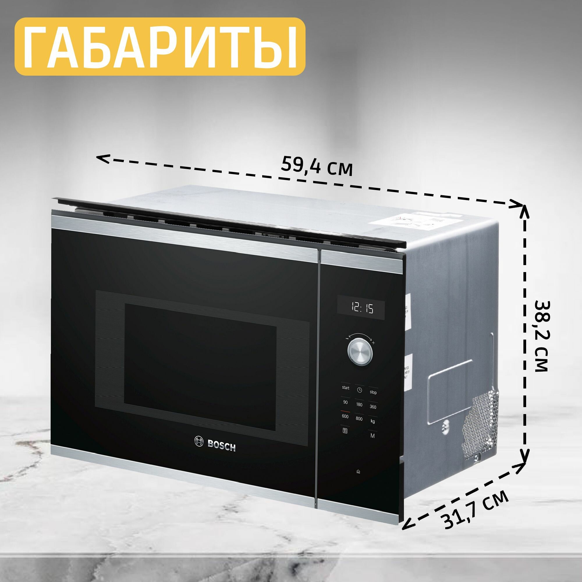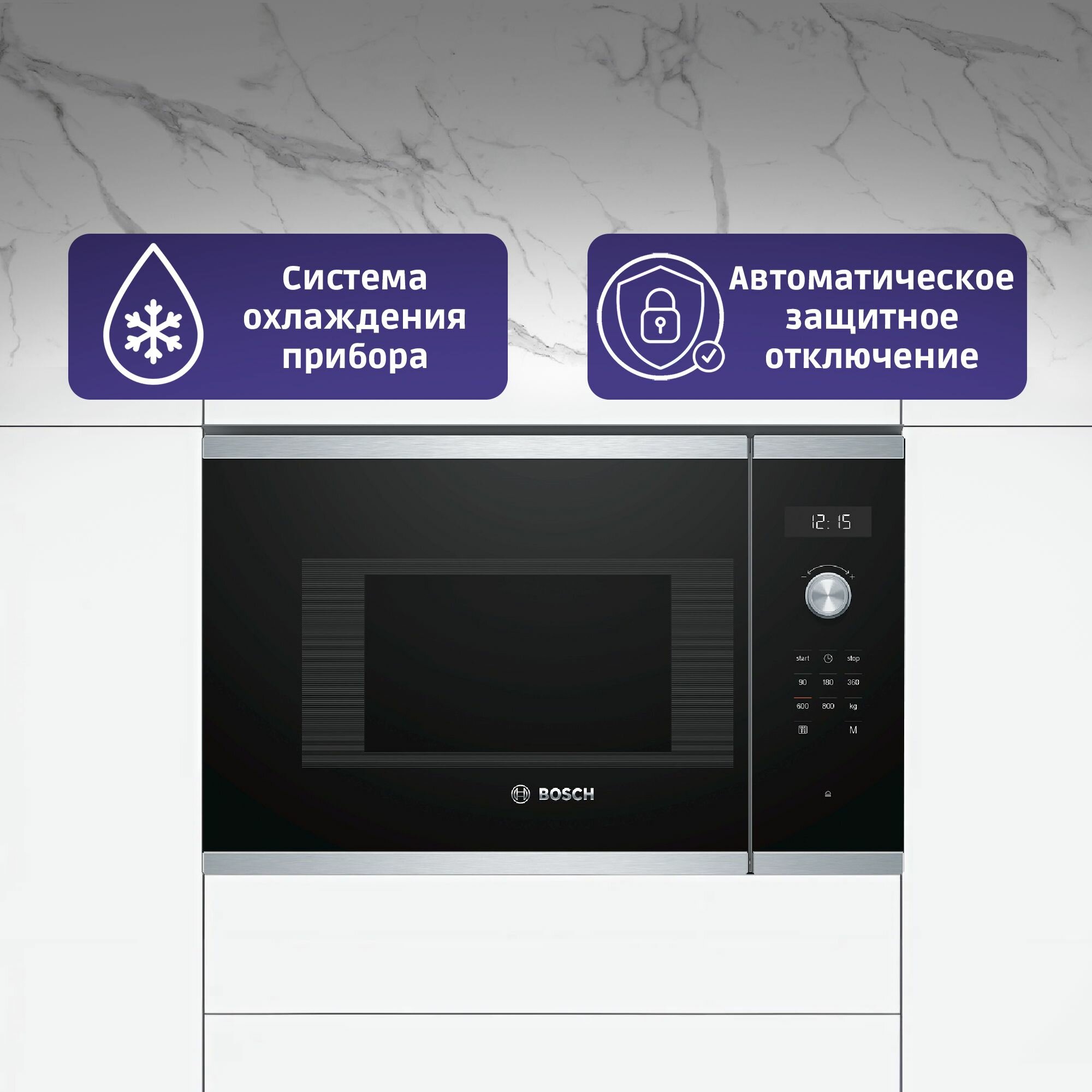 Микроволновая печь встраиваемая Bosch BFL524MB0, 20 л, 800 Вт, автоматическая разморозка, дисплей