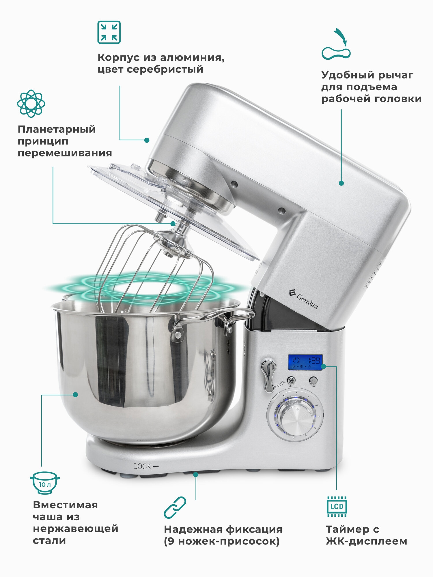Планетарный миксер Gemlux GL-SM10GR интересное: