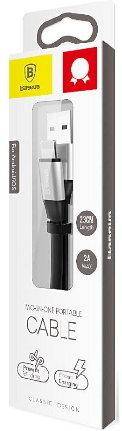 Купить Кабель Baseus 2 in 1 Portable USB - Lightning/microUSB (CALMBJ), 0.23 м, черный/серебристый
