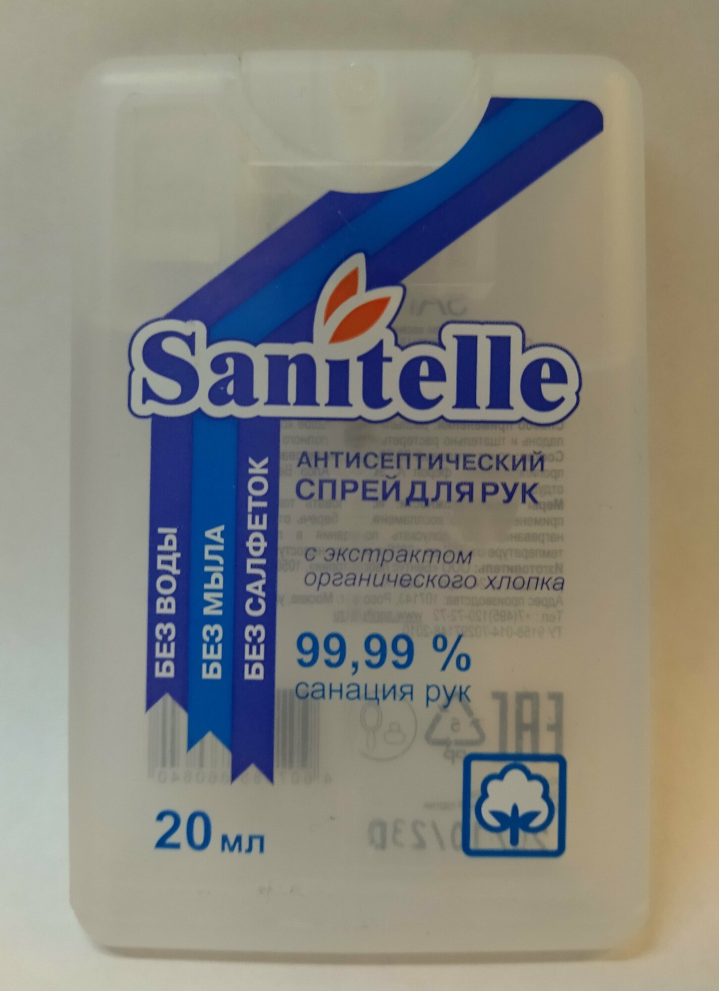 Ниже Вы можете прочитать отзывы на SANITELLE Антисептик для рук SANITELLE хлопок спрей 20 мл 0020-ИП, ознакомится с подробными характеристиками, посмотреть интересные обзоры и фотографии на SANITELLE Антисептик для рук SANITELLE хлопок спрей 20 мл 0020-ИП.