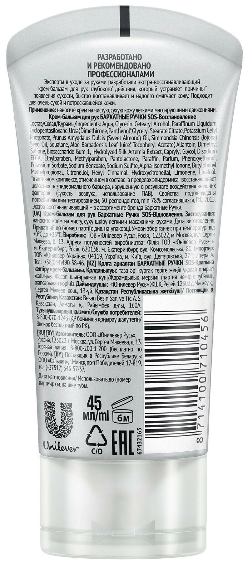 Крем-бальзам для рук бархатные ручки сос восстановление, 45мл