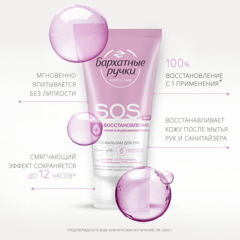 Крем-бальзам для рук Бархатные ручки SOS-восстановление, 45 мл Бархатные ручки 3298760 .