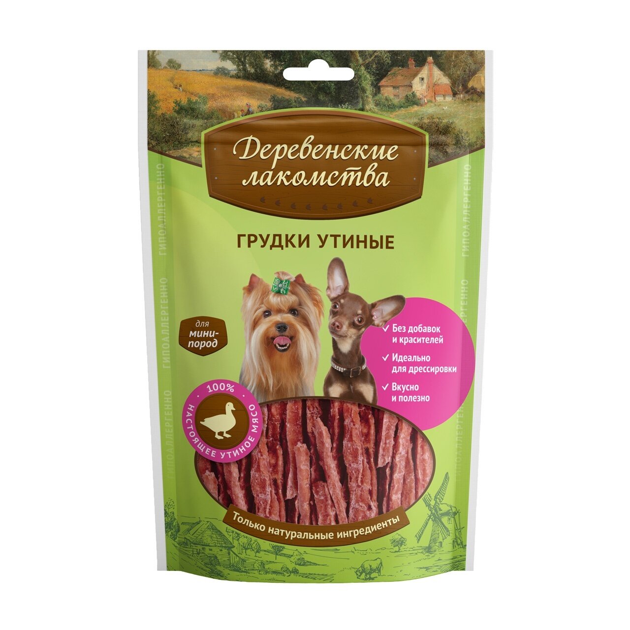 Лакомства Деревенские лакомства д/собак мини-пород Грудки утиные 55г