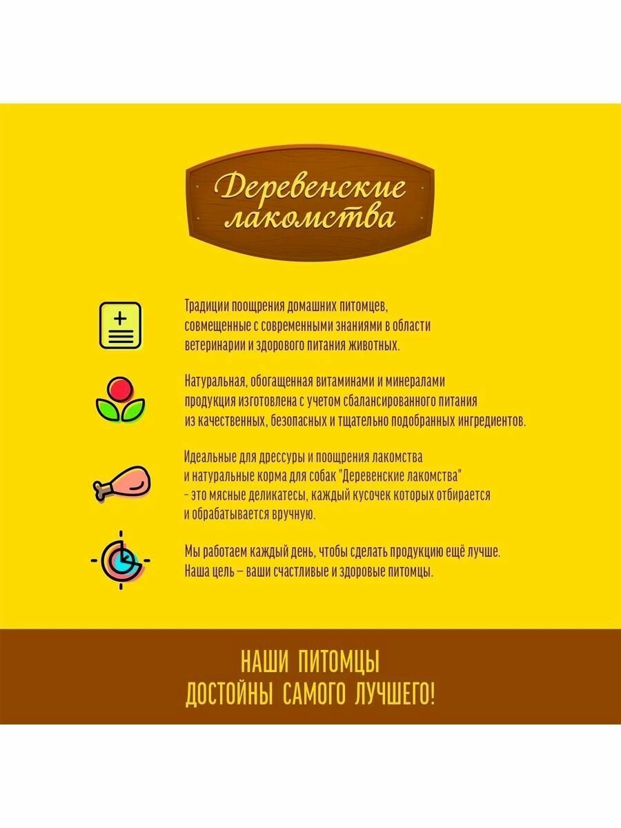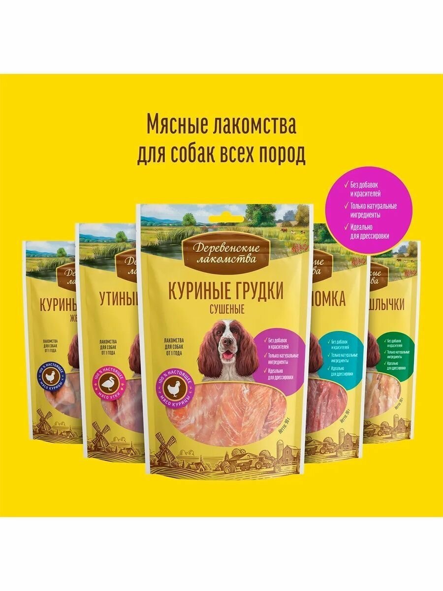 Лакомство для взрослых собак "Деревенские лакомства", утиная нарезка сушеная, 90 г