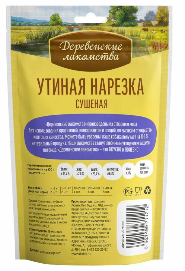Деревенские лакомства 1шт х 90г утиная нарезка для собак