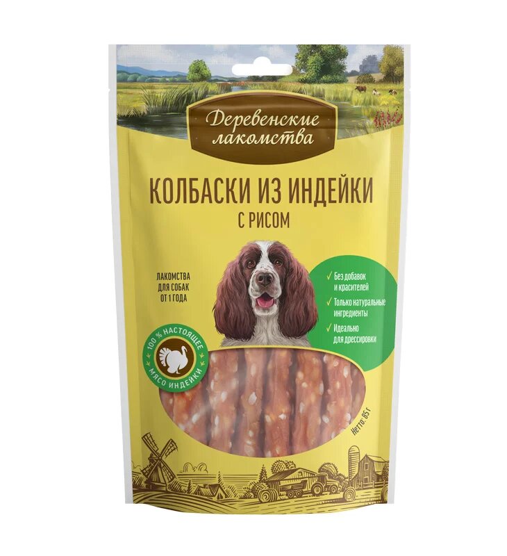 Лакомства деревенские для собак колбаски с индейкой и рисом (85 гр)