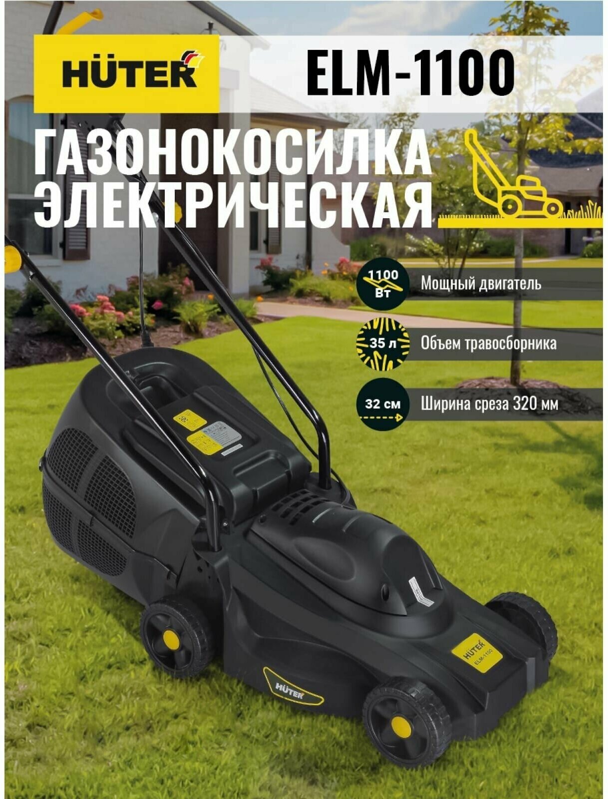 Газонокосилка электрическая Huter ELM-1100 интересное: