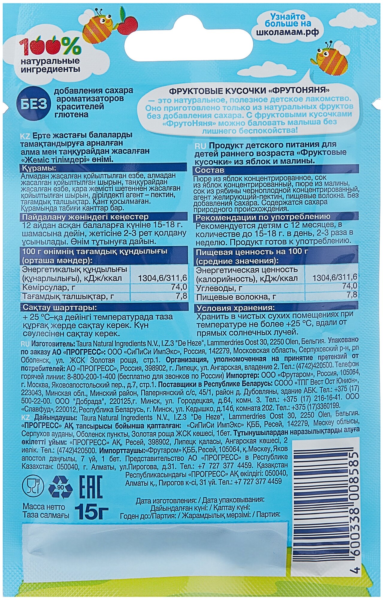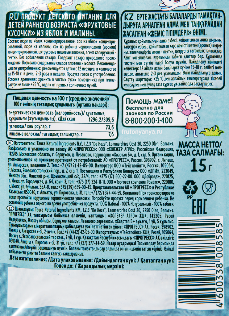 Ниже Вы можете прочитать отзывы на Фрутоняня фруктовые кусочки Яблоко/Малина 15г, ознакомится с подробными характеристиками, посмотреть интересные обзоры и фотографии на Фрутоняня фруктовые кусочки Яблоко/Малина 15г.