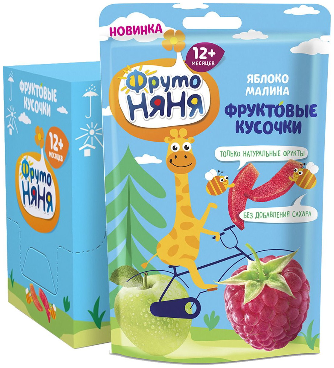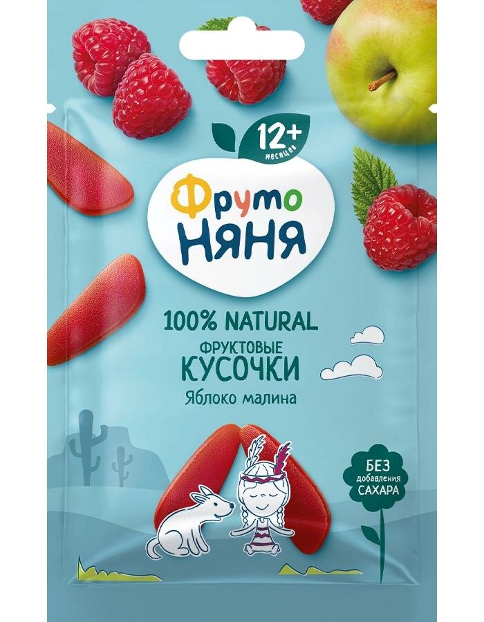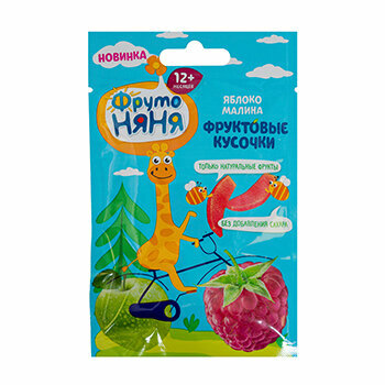 ФрутоНяня Фруктовые Кусочки из Яблок и Малины {с 12 мес} (Флоу-пак) 15г.