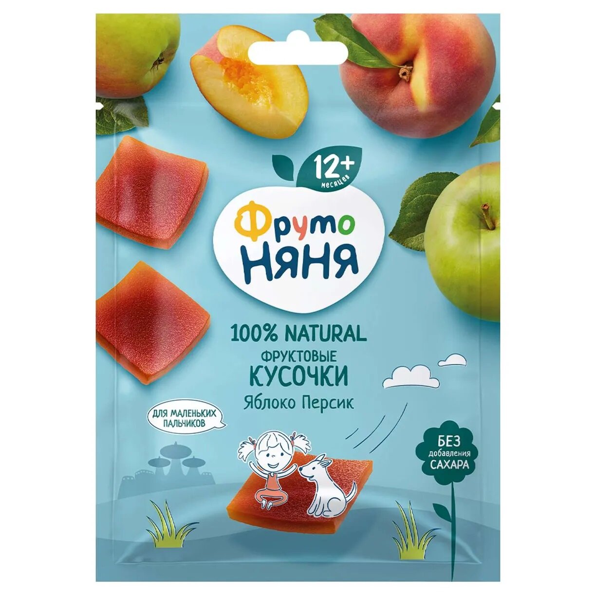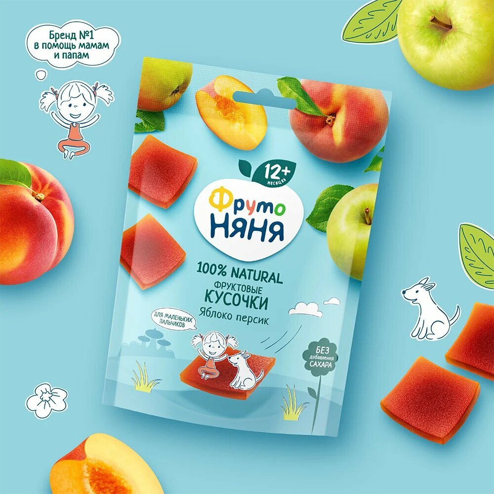 Фруктовые кусочки фрутоняня Яблоко-персик, с 12 месяцев, 10шт