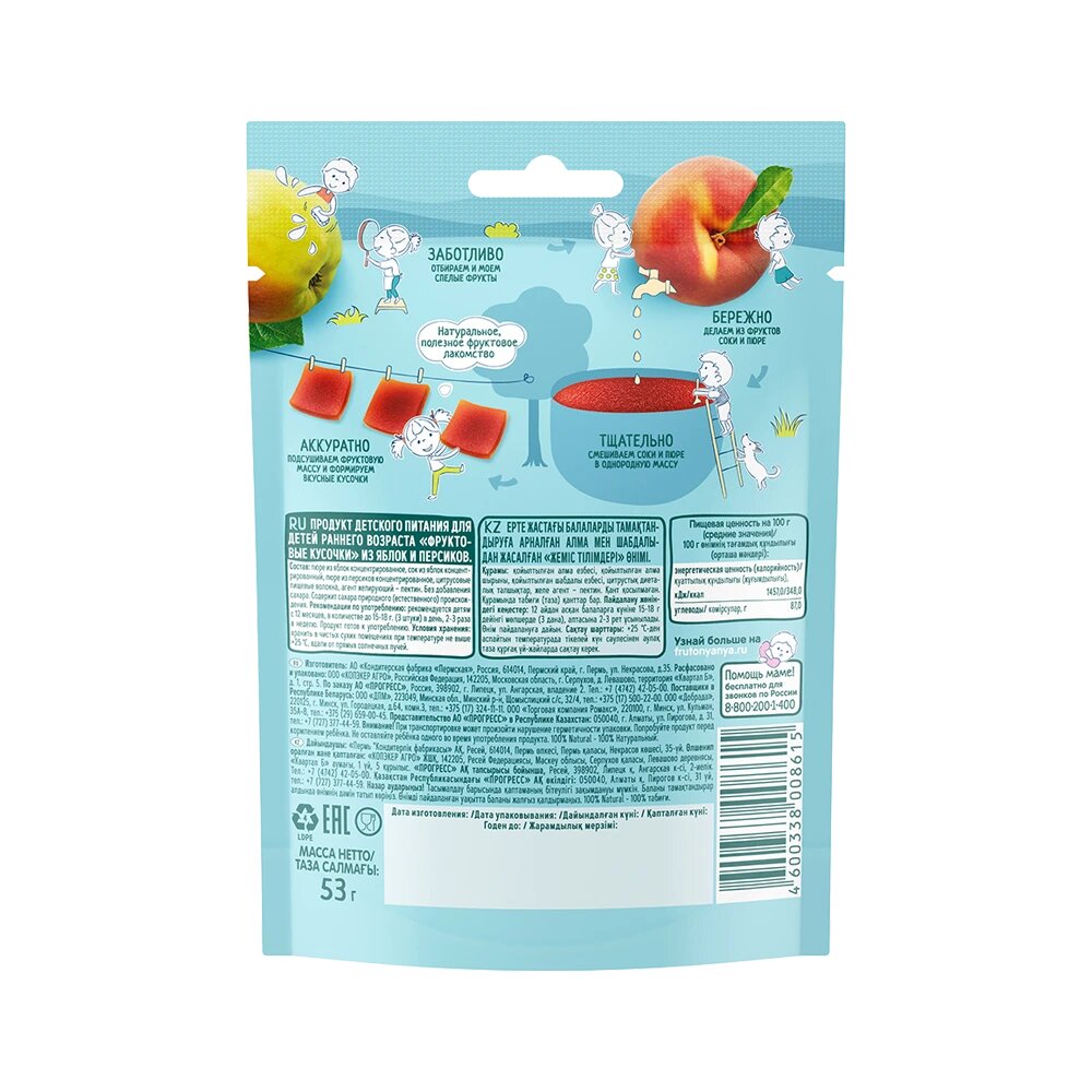 Кусочки фруктовые ФрутоНяня из яблок и персиков 53г с 12 месяцев интересное: