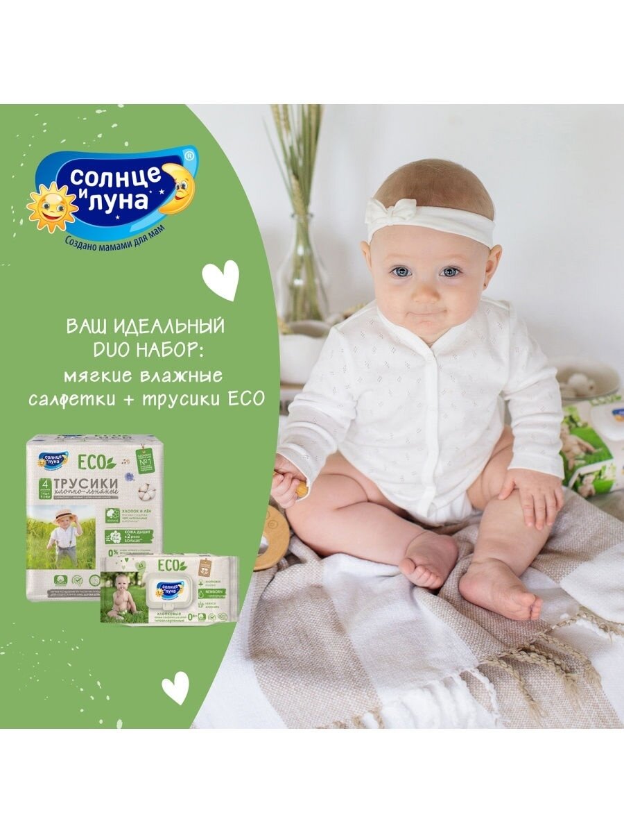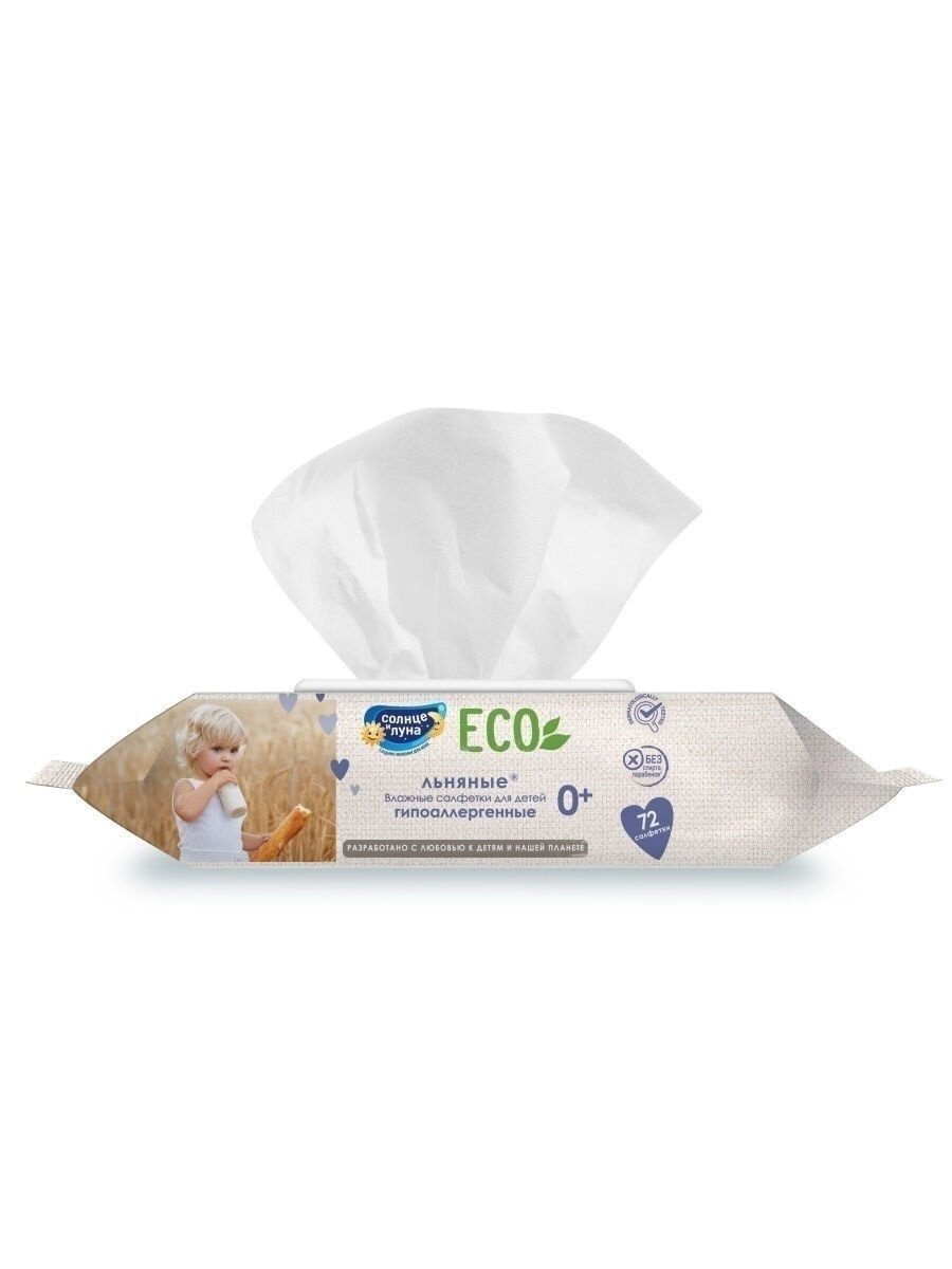 Солнце И луна ECO Влажные салфетки детские 0+ льняные 99% воды и экстракт семян льна big-pack с крышкой 72шт