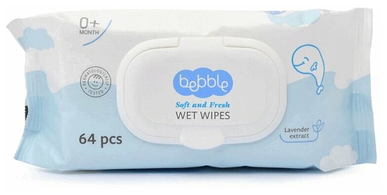 Влажные салфетки Bebble С экстрактом лаванды, 64 шт.