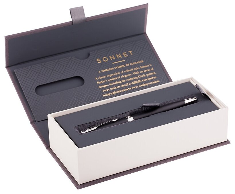 СохранитьРучка шариковая автоматическая Parker "Sonnet Matte Black СT", черная, 1,0мм, корпус черный, футляр интересное: