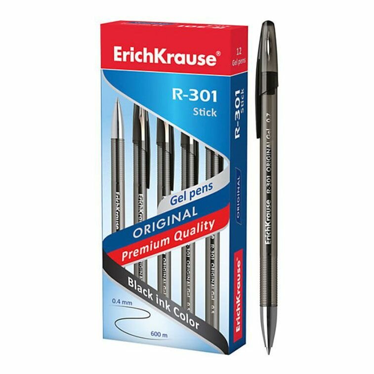 Ручка гелевая ErichKrause R-301 Original Gel Stick 0.5, цвет чернил черный (в коробке по 12 шт.)