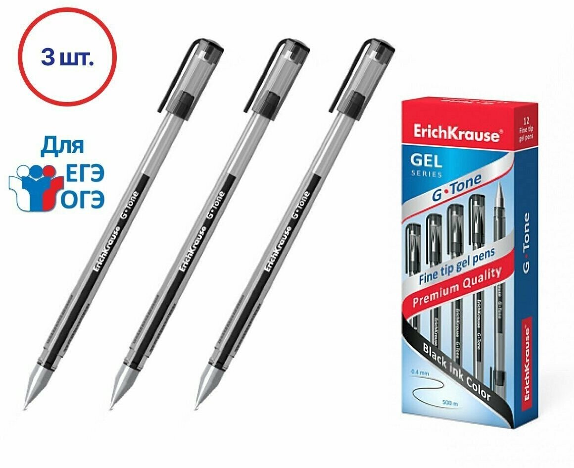 Купить Ручка гелевая ErichKrause G-Tone, черная, 0.4мм, 3 шт.