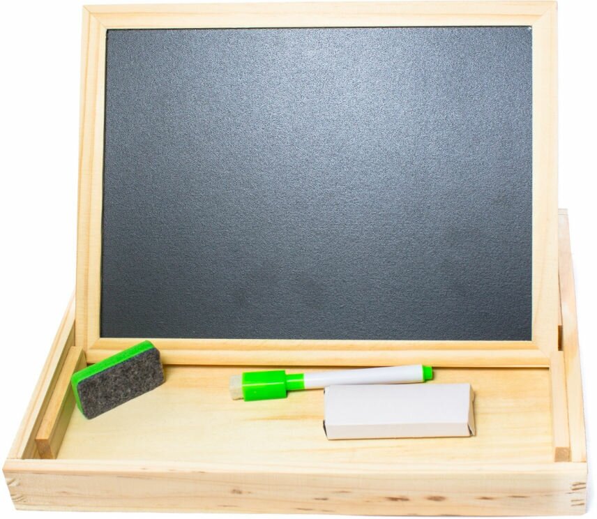 | Плюсы: | Дерево, есть всё необходимое для занятий(мел, губка стирать с доски) |