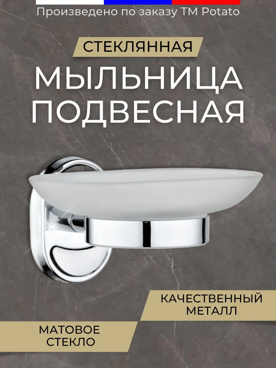 Мыльница настенная (матовое стекло), хром, Potato (Китай), арт P2902 интересное: