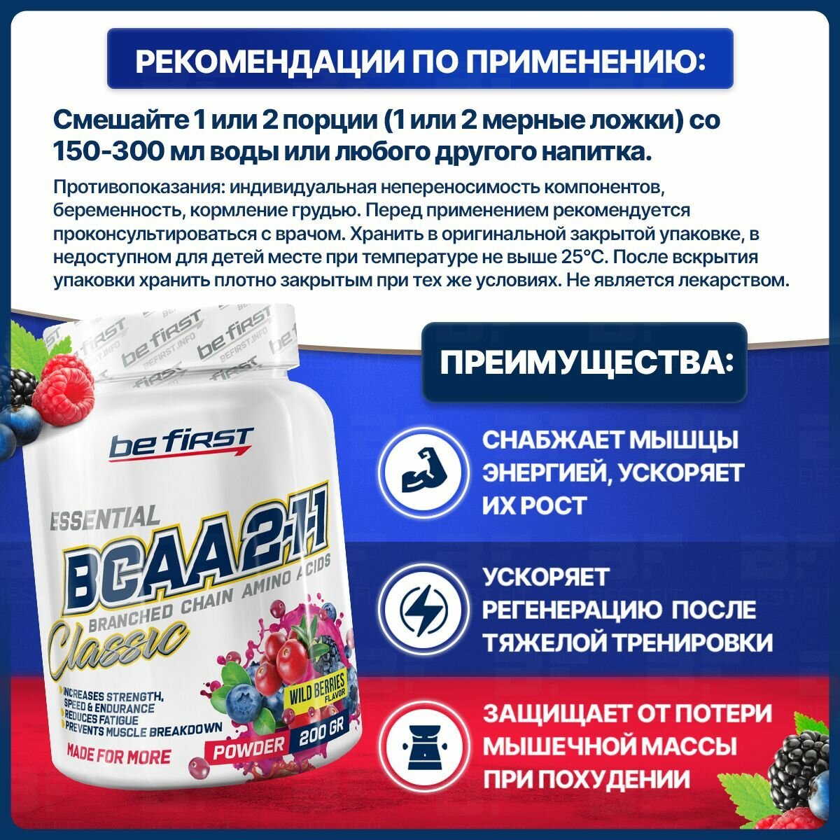 Be First BCAA 2:1:1 Classic Powder - 200 грамм, лесные ягоды