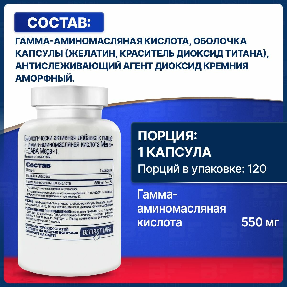 Гамма аминомасляная кислота Be First GABA 120 капсул