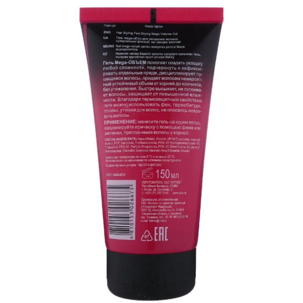 Гель для волос Белита Гель для волос Мега-объем для укладки волос быстросохнущий суперсильной фиксации - Белорусская косметика