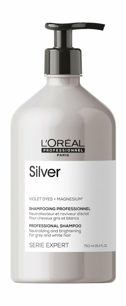 Шампунь LOREAL PROFESSIONNEL Silver для нейтрализации желтизны осветленных и седых волос, 750 мл