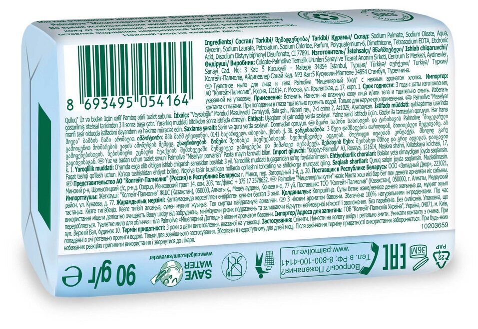 Мыло твёрдое PALMOLIVE Мицеллярный уход 90г Хлопок скидка