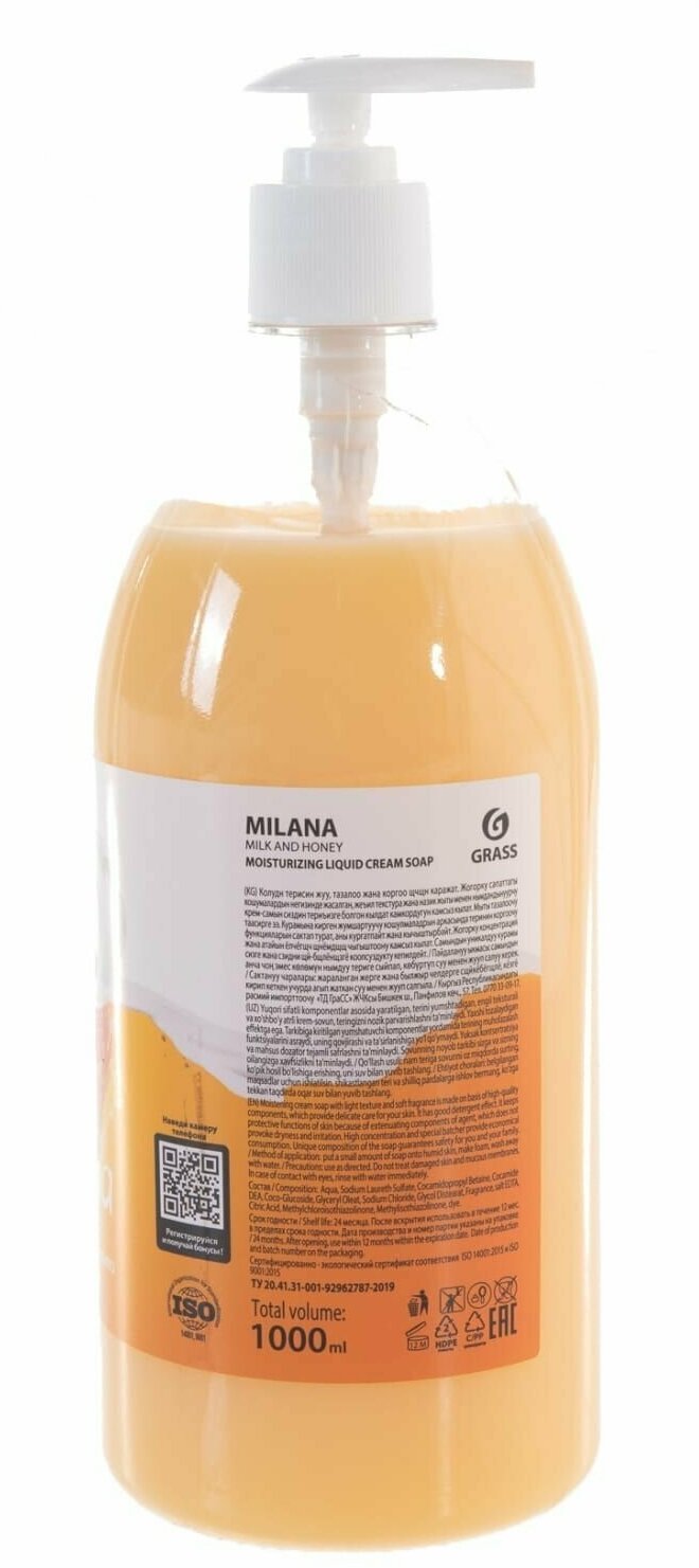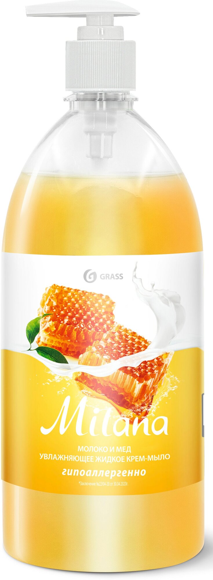 GRASS 126101 Мыло жидкое крем "MILANA" молоко и мёд (1 л.) с дозатором; GRASS