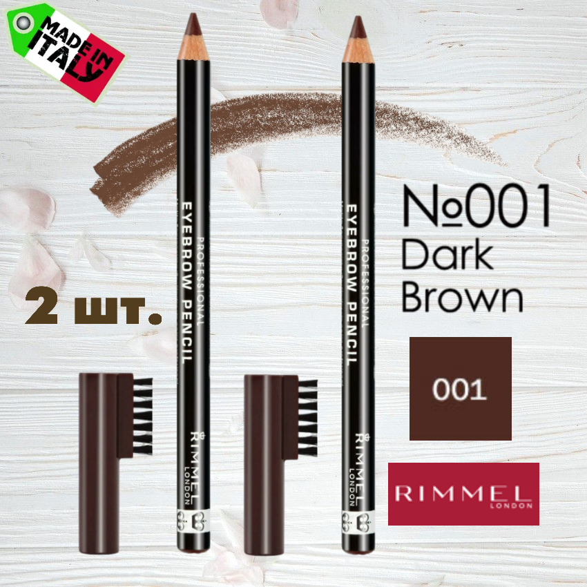 Купить 2 шт. Карандаш профессиональный для бровей Rimmel Professional - Dark Brown №001, Италия.