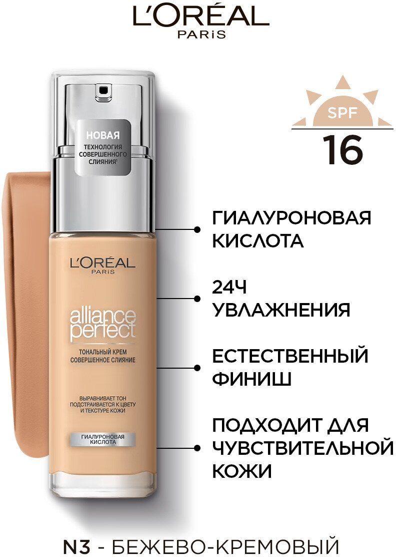 Разное shop.a-quasar.com Тональный крем L'Oreal Alliance Perfect Совершенное слияние, тон N3, кремово-бежевый, 30 мл