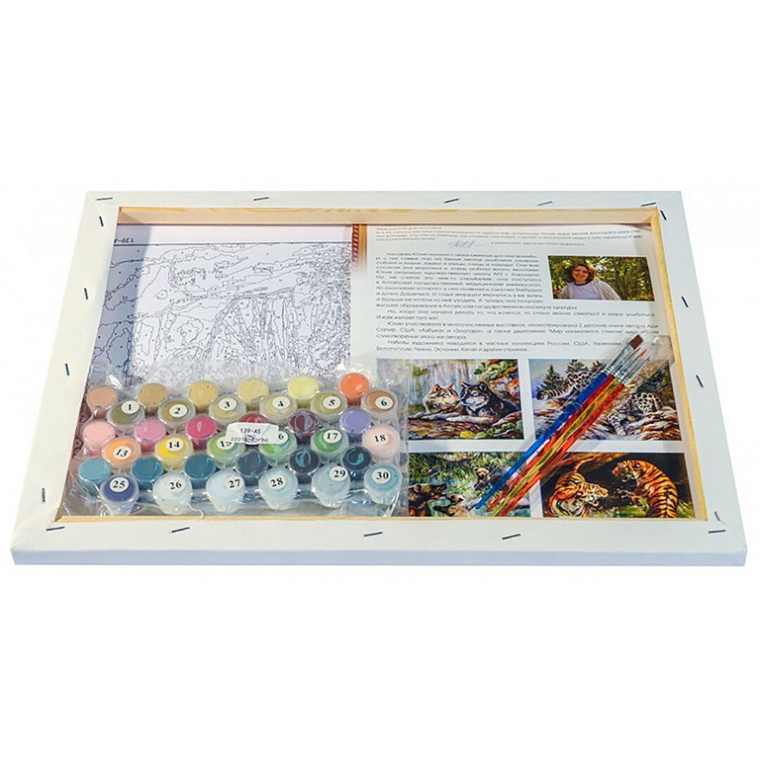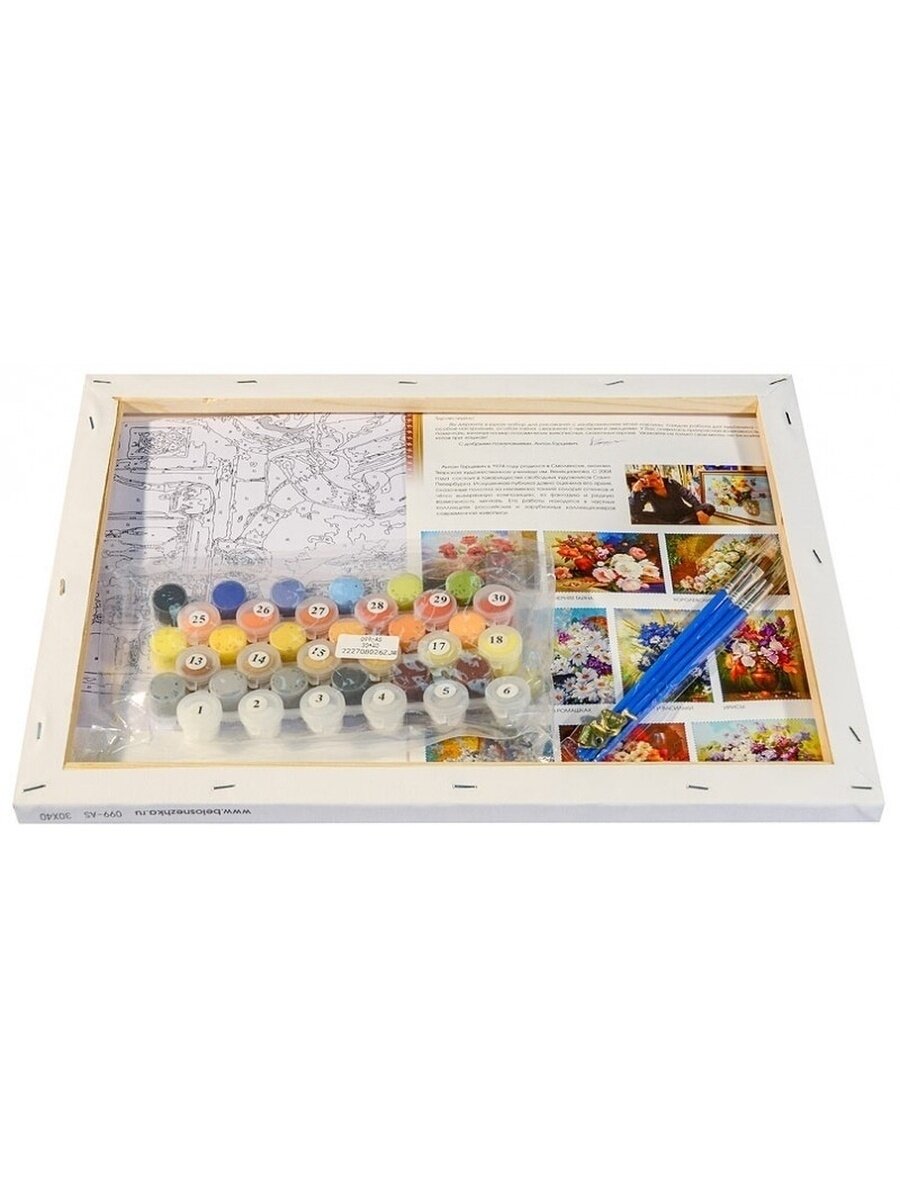 | Плюсы: | Раскраска по номерам уровень сложности 5 звезд. Полноценный набор холст на подрамнике и 36 цветов акриловых красок в маленьких баночках и 4 кисти. |