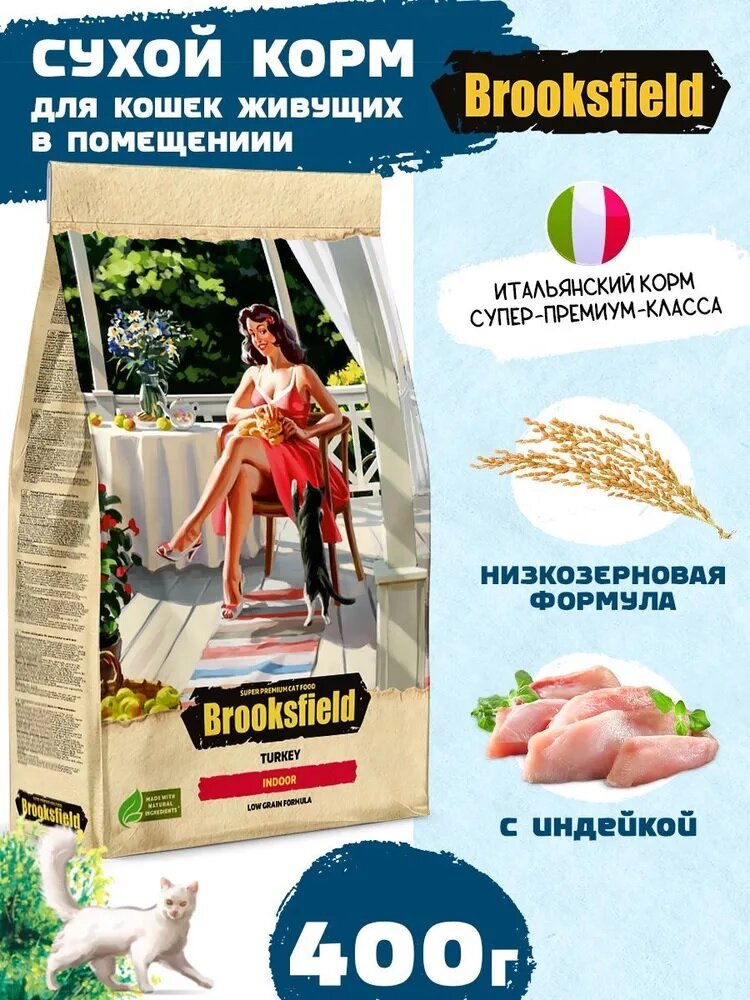 Сухой корм BROOKSFIELD Adult Cat Indoor Turkey для для взрослых кошек, индейка с рисом, 400 г